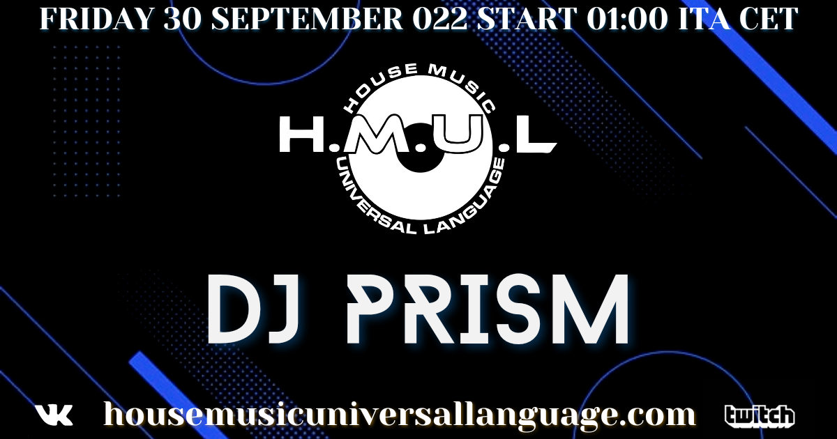 House Music Universal Language è lieta di presentarvi Dj Prism artista americano. La diretta verrà trasmessa: Sul sito https://housemusicuniversallanguage.com Su Twitch https://www.twitch.tv/hmul …