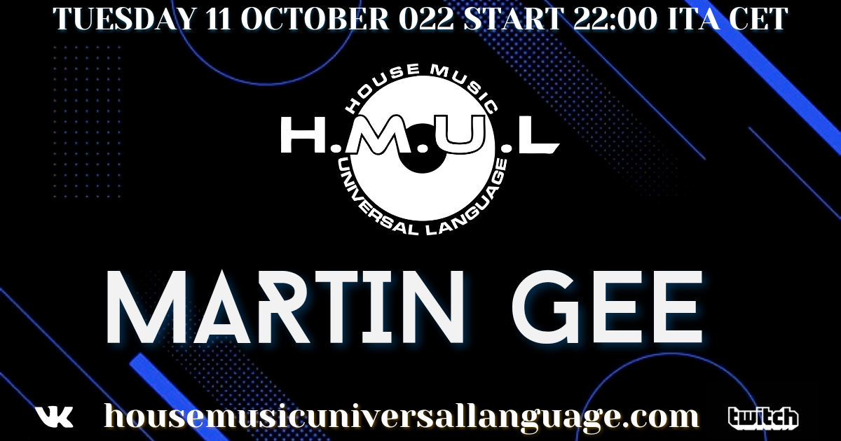 House Music Universal Language è lieta di presentarvi Martin Gee artista americano. La diretta verrà trasmessa: Sul sito https://housemusicuniversallanguage.com Su Twitch https://www.twitch.tv/hmul …