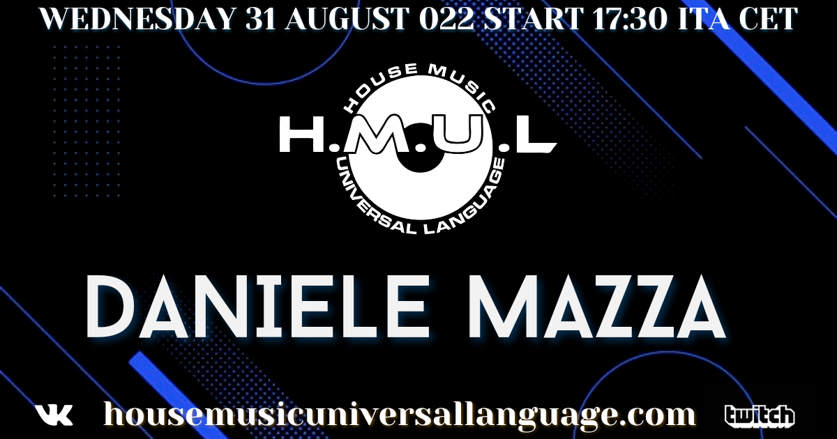 House Music Universal Language e’ lieta di presentarvi Daniele Mazza artista italiano. La diretta verrà trasmessa: Sul sito https://housemusicuniversallanguage.com su Twitch https://www.twitch.tv/hmul …