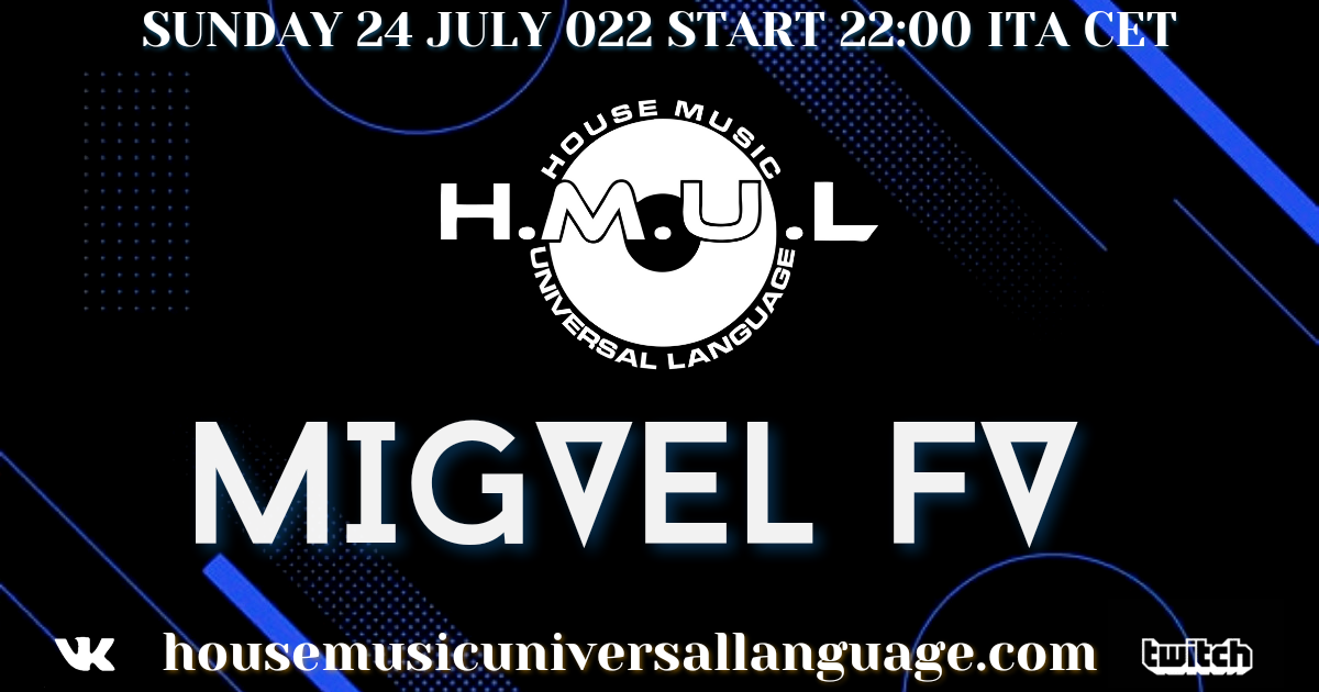House Music Universal Language presenta dalla Spagna Migvel Fv. La diretta verrà trasmessa: sul sito https://housemusicuniversallanguage.com sul canale https://www.twitch.tv/hmul House Music Universal …