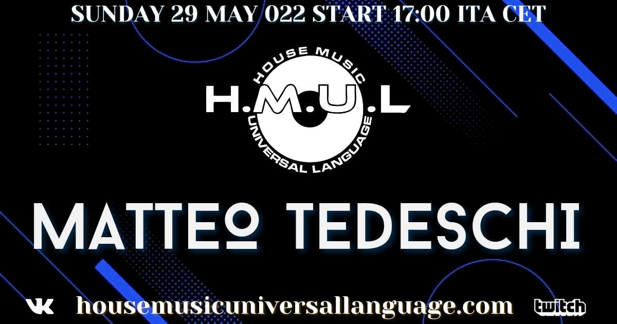 House Music Universal Language presenta Matteo Tedeschi artista italiano. La diretta verrà trasmessa: sul sito https://housemusicuniversallanguage.com su https://www.twitch.tv/hmul su https://vk.com/public181143249 House Music Universal …