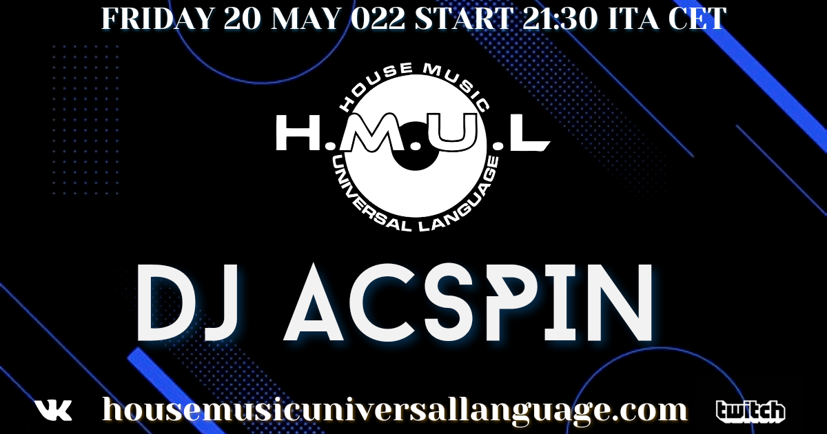 House Music Universal Language è lieta di presentarvi Dj Acspin artista canadese. La diretta verrà trasmessa: Sul sito https://housemusicuniversallanguage.com Su Twitch https://www.twitch.tv/hmul …