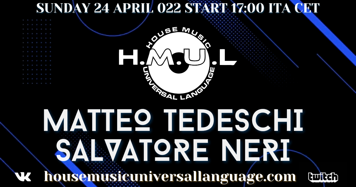 House Music Universal Language presenta Matteo Tedeschi artista italiano. La diretta verrà trasmessa: sul sito https://housemusicuniversallanguage.com su https://www.twitch.tv/hmul su https://vk.com/public181143249 House Music Universal …