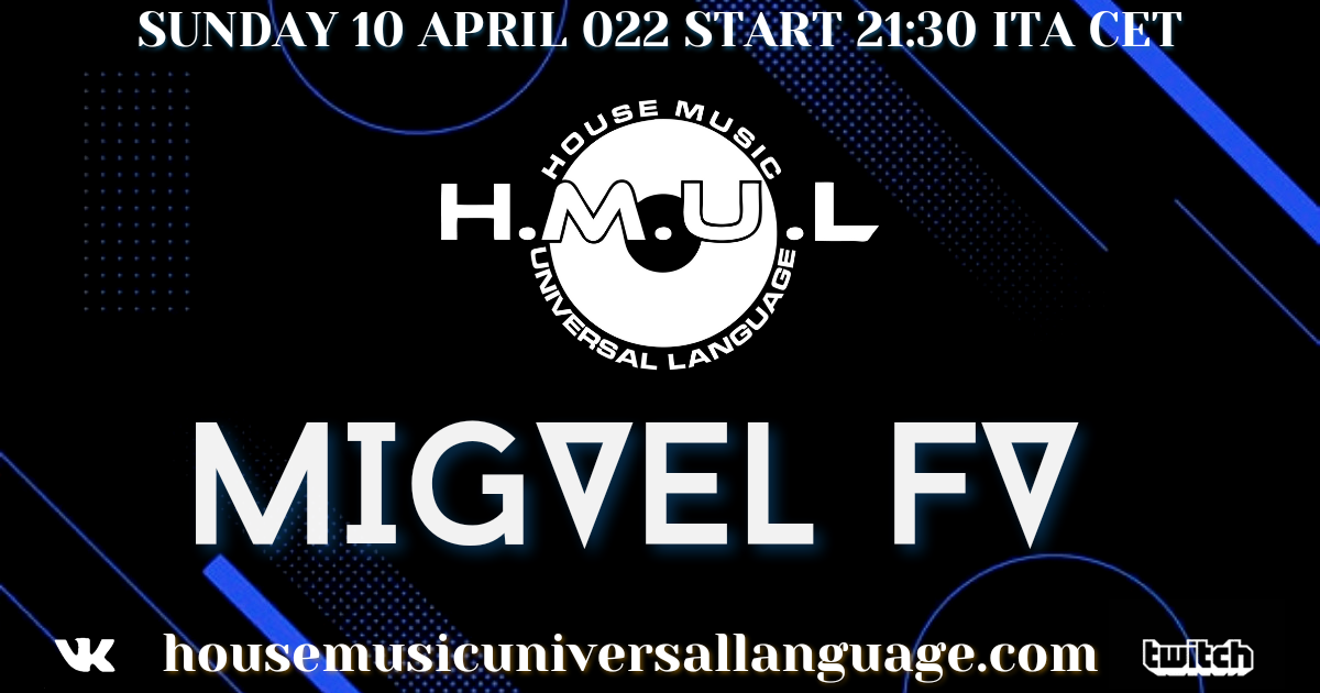 House Music Universal Language presenta dalla Spagna Migvel Fv. La diretta verrà trasmessa: sul sito https://housemusicuniversallanguage.com sul canale https://www.twitch.tv/hmul House Music Universal …