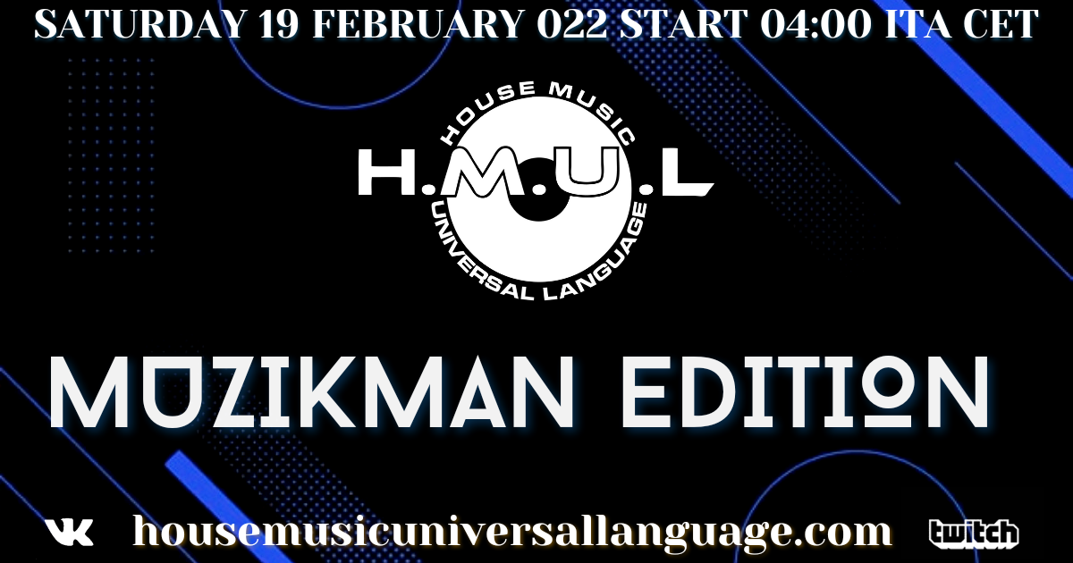 House Music Universal Language presenta dagli Usa l Artista Newyorkese MuzikMan Edition. La diretta verrà trasmessa: sul sito http://www.housemusicuniversallanguage.com sul canale https://www.twitch.tv/hmul …