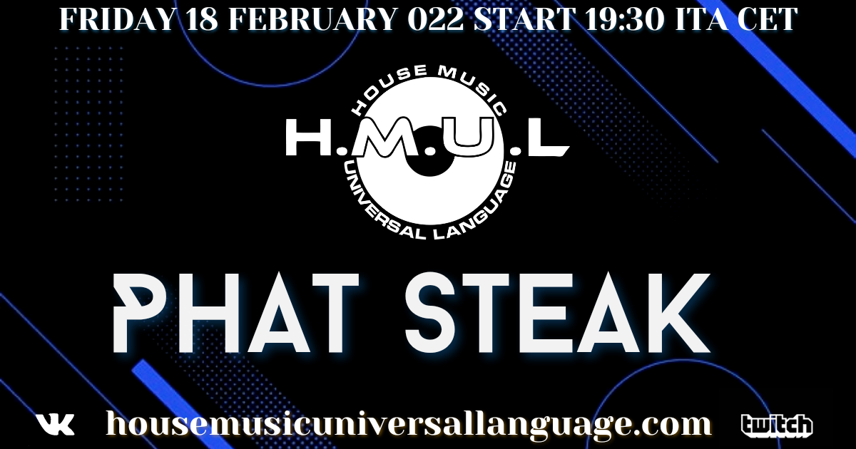 House Music Universal Language presenta l’ artista polacco Phat Steak La diretta verrà trasmessa: dal sito https://housemusicuniversallanguage.com dal canale https://www.twitch.tv/hmul House Music …