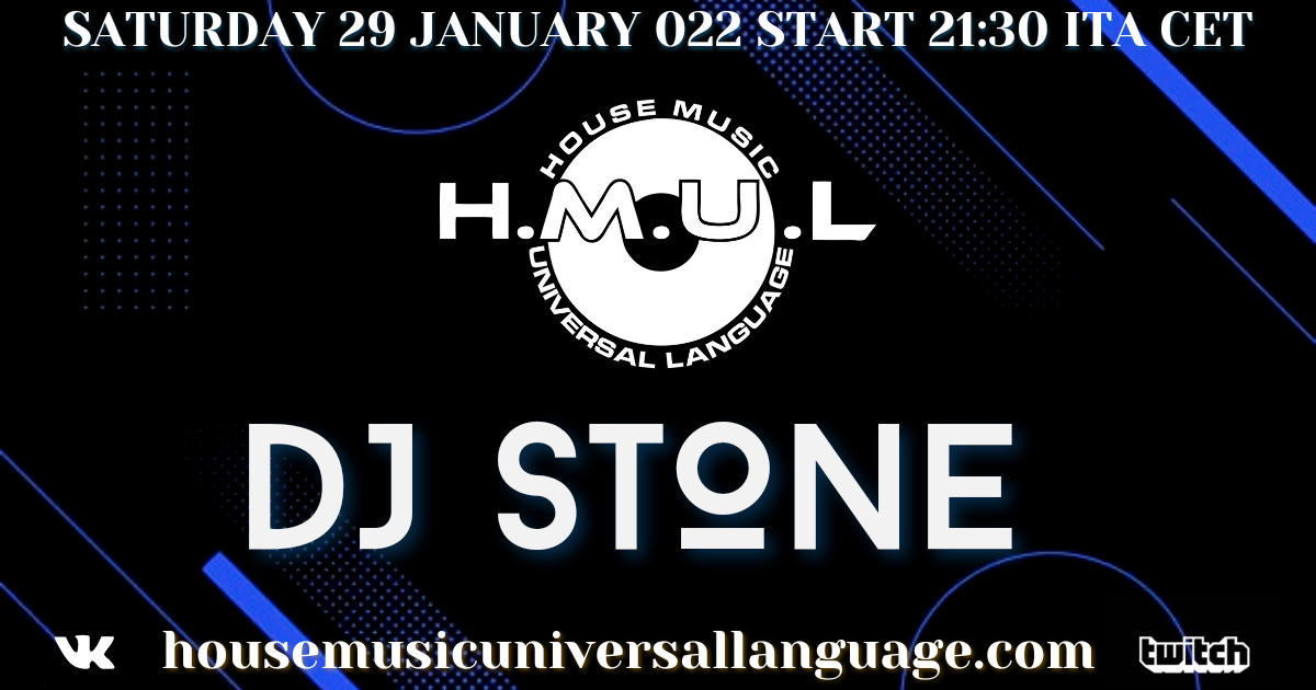 House Music Universal Language presenta l’ artista italiano Dj Stone La diretta verrà trasmessa: dal sito https://housemusicuniversallanguage.com dal canale https://www.twitch.tv/hmul dalla pagina …