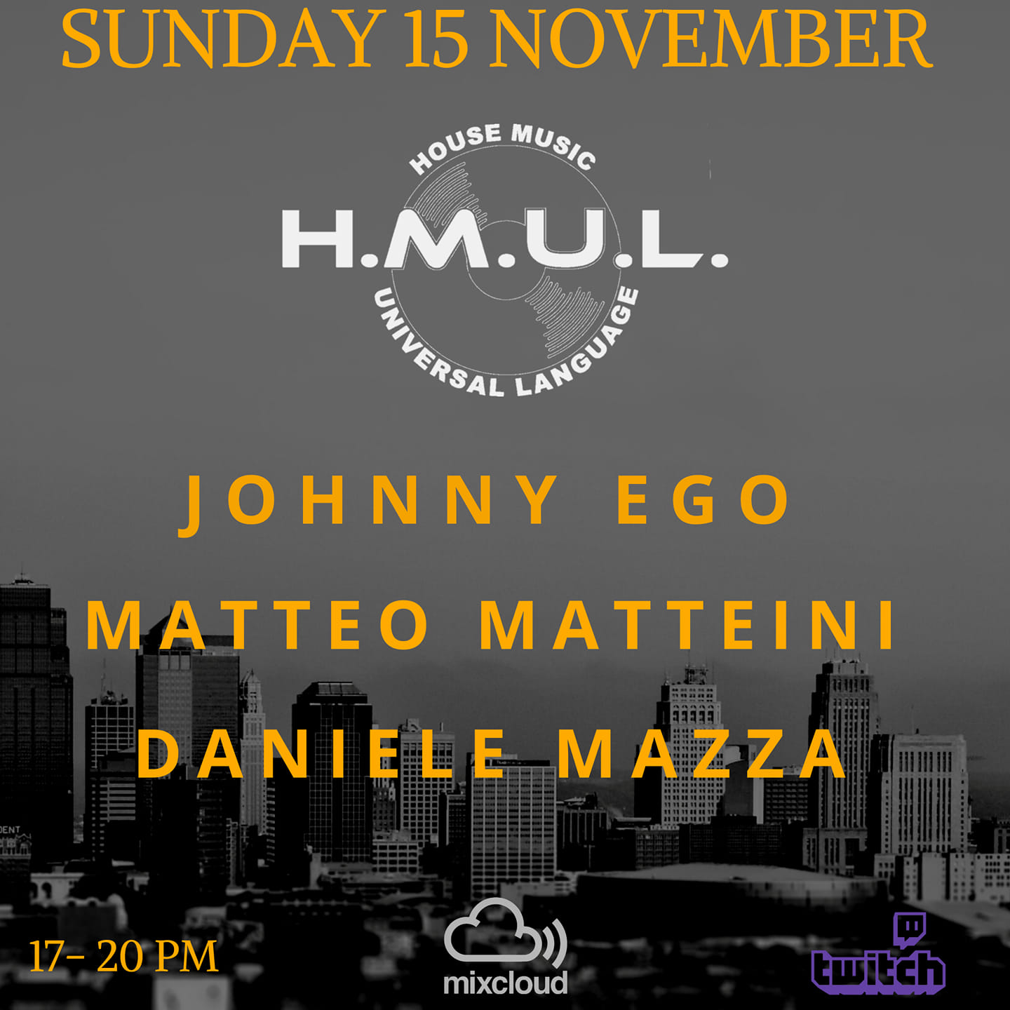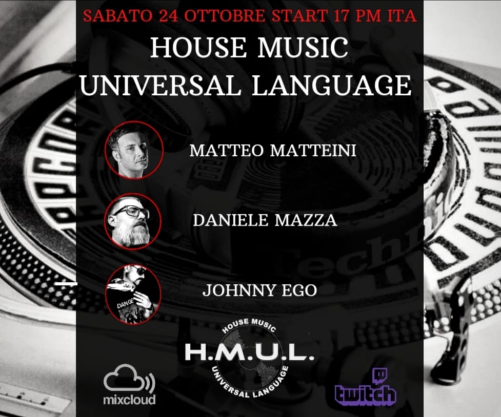 H.M.U.L. Domenica 15 Novembre 020 Live Streaming su Twitch e Mixcloud 3 ore di House Music e Visual Art con …