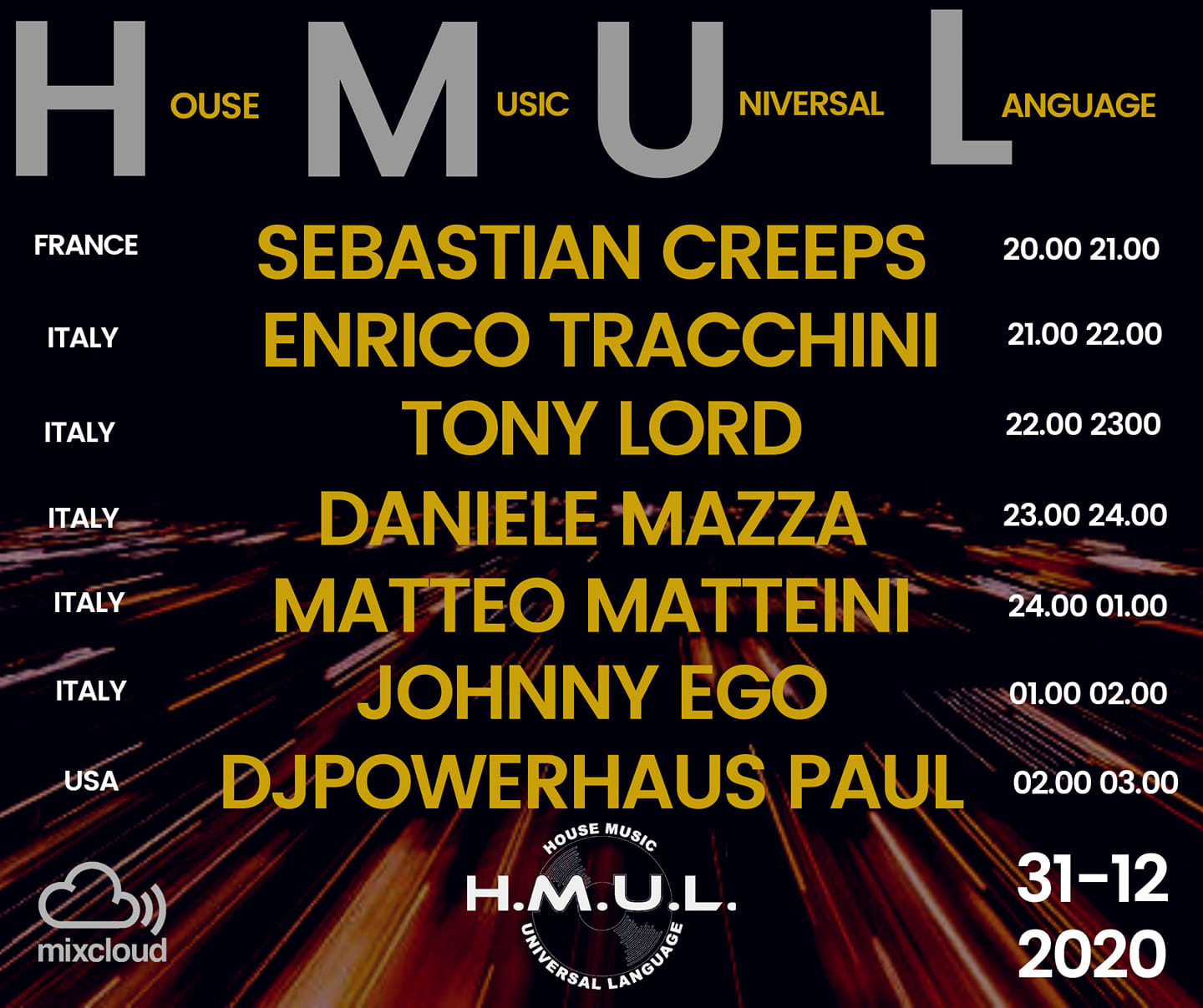 H.M.U.L. 31 12 2020 Live Streaming su Mixcloud House Music Universal Language presenta la time line per festeggiare …